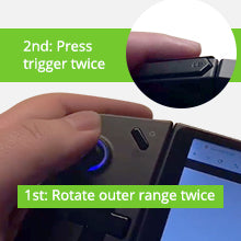 Rotate joystick and press trigger